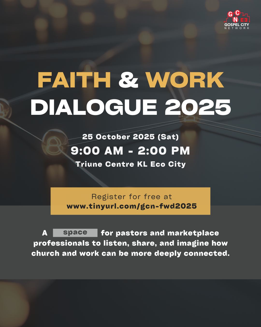 Faith and Work Dialogue 2025 + Add to Google Calendar 00 days 00 hours 00 minutes 00 seconds January to June 2025 Ministry HighlightsJuly 31, 2025Why Do Ministry Leaders Need Gospel Renewal?April 30, 2025Work Matters – Keynote TalksApril 3, 2025Restoration: Work Within An Eternal PerspectiveApril 3, 2025Renewal: Objects and Agents of Grace at WorkApril 3, 2025Redemption: Gospel-Centred WorkApril 3, 2025Fall: When Work Gets HardApril 3, 2025Creation: God’s Design for WorkApril 3, 2025The Gospel Story: Why Work MattersApril 3, 2025Shaping the Church in the CityMarch 14, 2025Translate