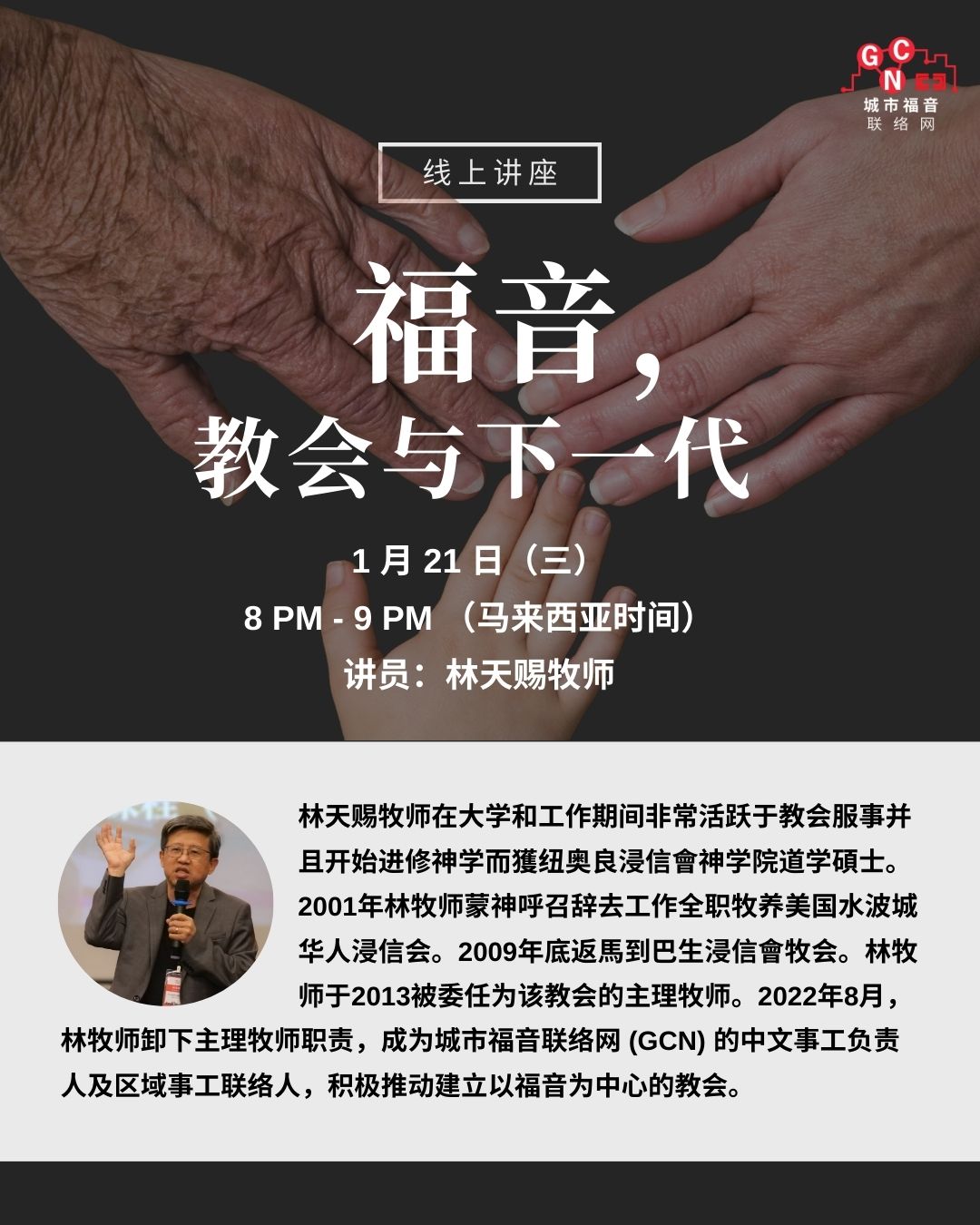 本次线上讲座将围绕福音、教会生活与下一代的关系,邀请大家一起思考教会在陪伴与牧养下一代时所面对的一些关键问题,并从福音的角度,重新整理方向与重点。