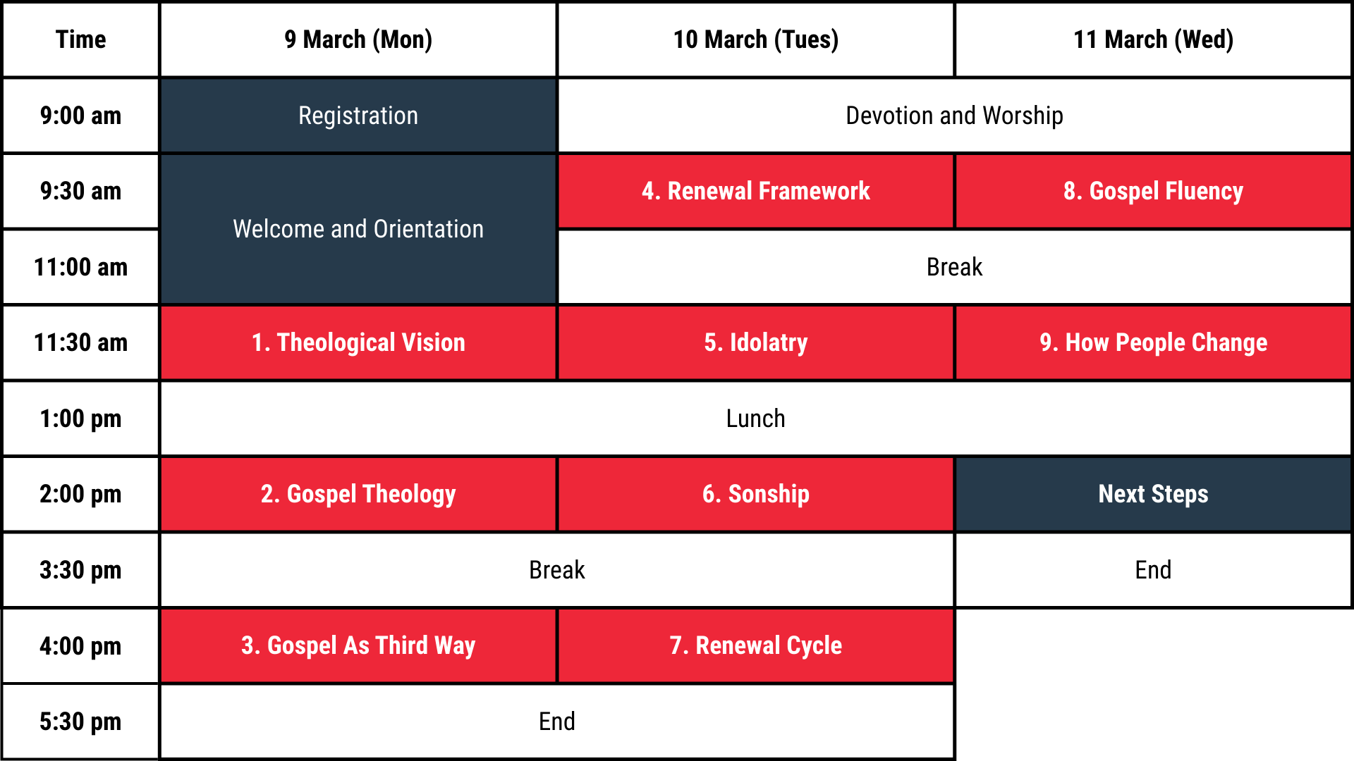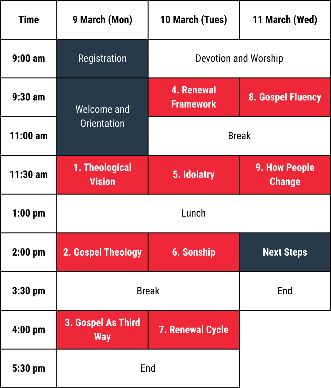 Mini Intensive Part 1 is a 3-day training programme designed for church planters, pastors, and elders committed to planting and strengthening gospel-centred churches. In Part 1, participants will be introduced to a series of foundational modules exploring the gospel’s implications for both the leader and the church. These include Theological Vision, Gospel Theology, Renewal Framework, How People Change, Contextualisation, and more, designed to help leaders immerse in Gospel DNA and reflect on how the gospel renews our hearts and the heart of the church.